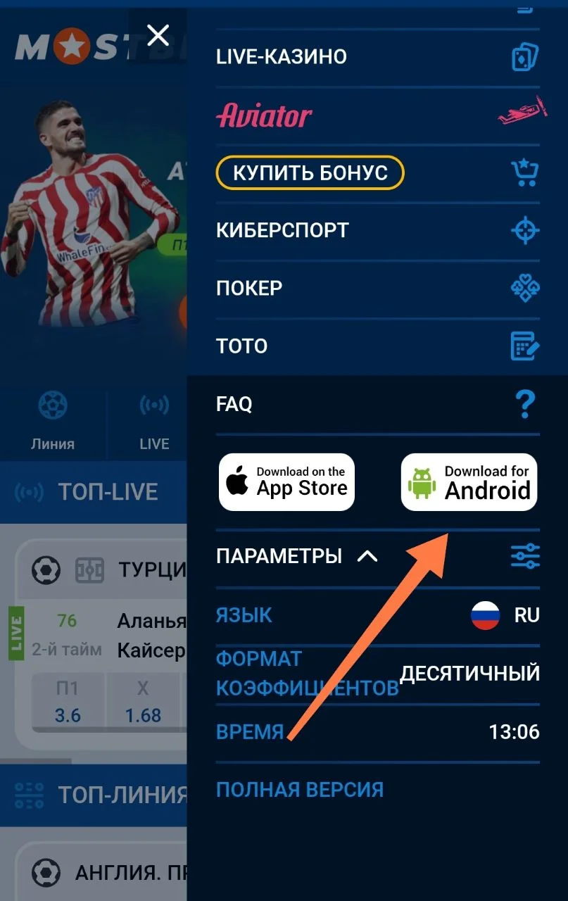 Мостбет скачать приложение для Android вы можете с официального сайта, оно не доступно в Google Play. Для установки на свое устройство необходимо: