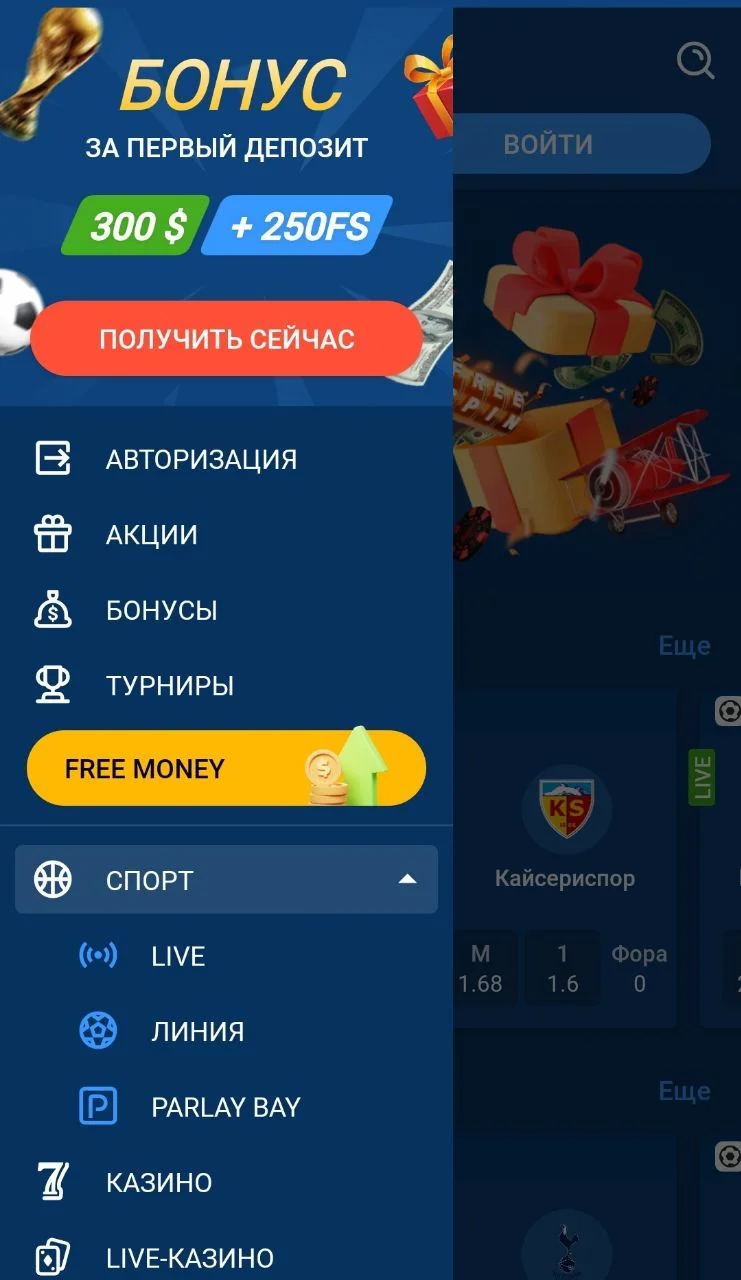 - Вы можете получить бонус за установку – 100 FS, а также любые другие бонусы и акции, доступные в букмекерской конторе и в казино;